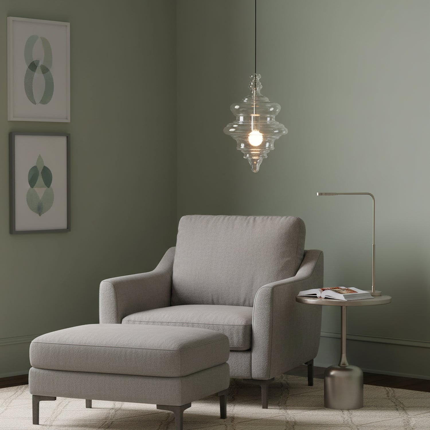 Bring dramatic elegance into your space with this sculptural glass pendant light, designed to capture the grandeur of classic theatre chandeliers in a more modern form. Its fluid silhouette creates a sense of movement and opulence, while the transparent glass keeps the design light, airy, and visually refined. The result is a statement piece that feels both vintage-inspired and distinctly contemporary.