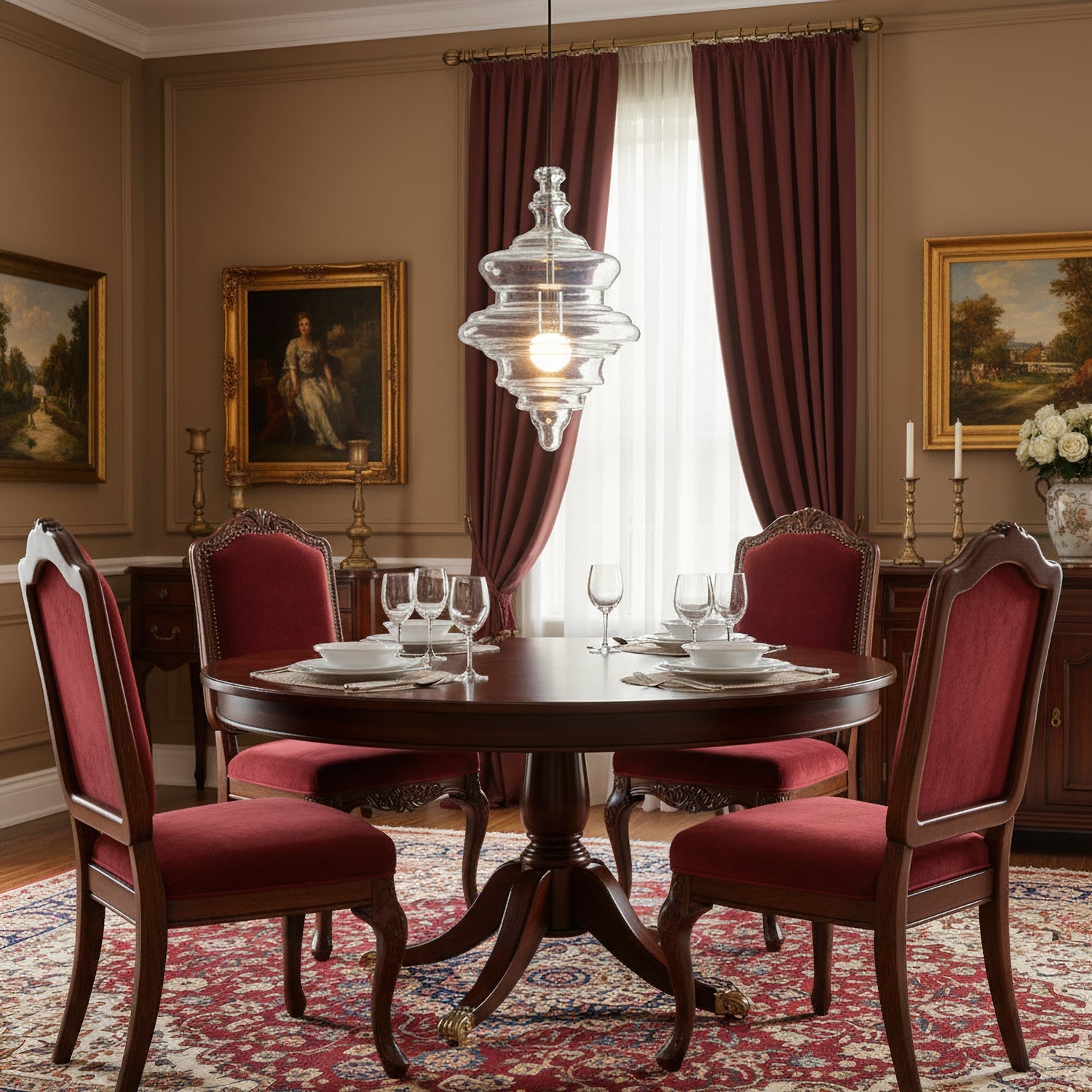 As light moves through the handcrafted glass, it creates depth and softness that enhance the surrounding space. The glow feels warm and polished, helping dining areas, living rooms, and entryways feel more intimate, elevated, and thoughtfully composed.