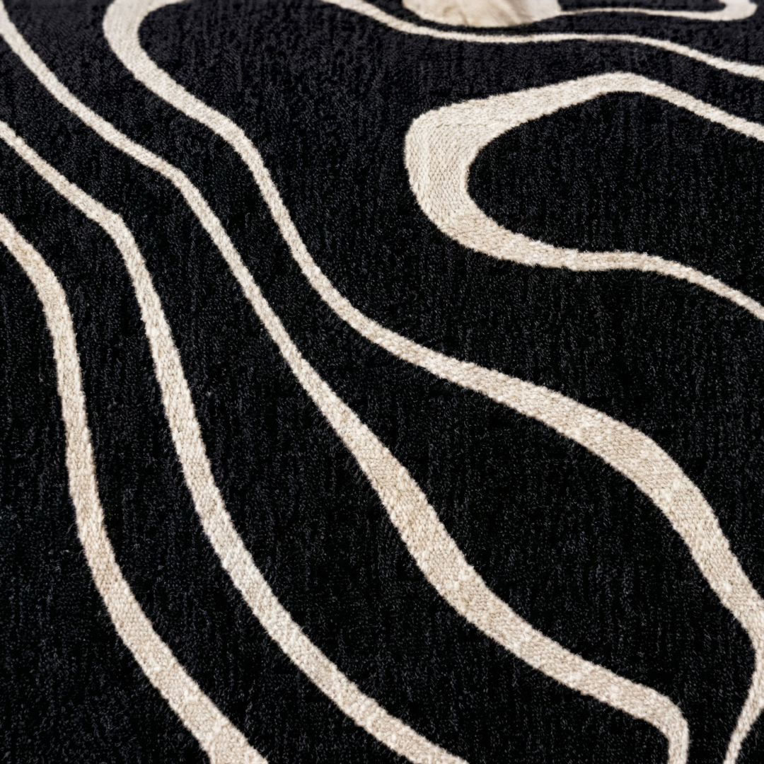 The graphic composition adds depth and character while maintaining a structured, architectural presence that feels intentional and refined.